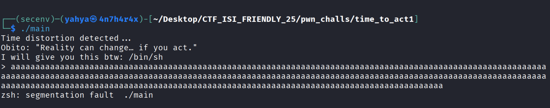 So based on this output we see that we triggered a segmentation fault meaning we wrote somwhere we shouldnt , and it also gives us /bin/sh which is very good for us and now i already know what i need to , we’re definetly gonna use it , let’s keep analysing further